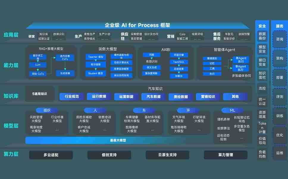 端到端的一站式AI工作空间深度融合了从企业战略规划到日常经营的全流程业务板块,,,定向解决车企内部领域多、、、、部门多、、、、链条长、、、、场景碎片化等难题,,支持车企快速构建以AI为核心的生产力写作体系,,实现任务执行与AI能力的无缝集成与交互